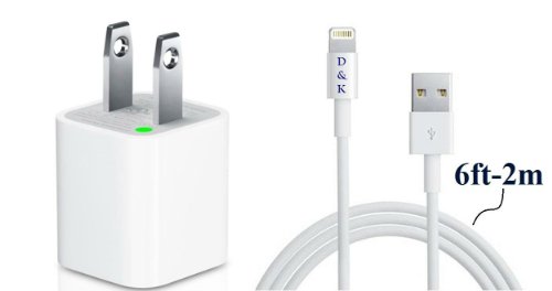 Buy D & K Exclusives® 6 Ft - 2M Extra Long USB Cable for Apple iPhone 5, 5S, 5C iPad, iPod Sync Cable Power Cord with Wall Charger (White) By D & K Exclusives